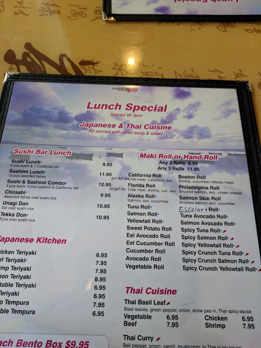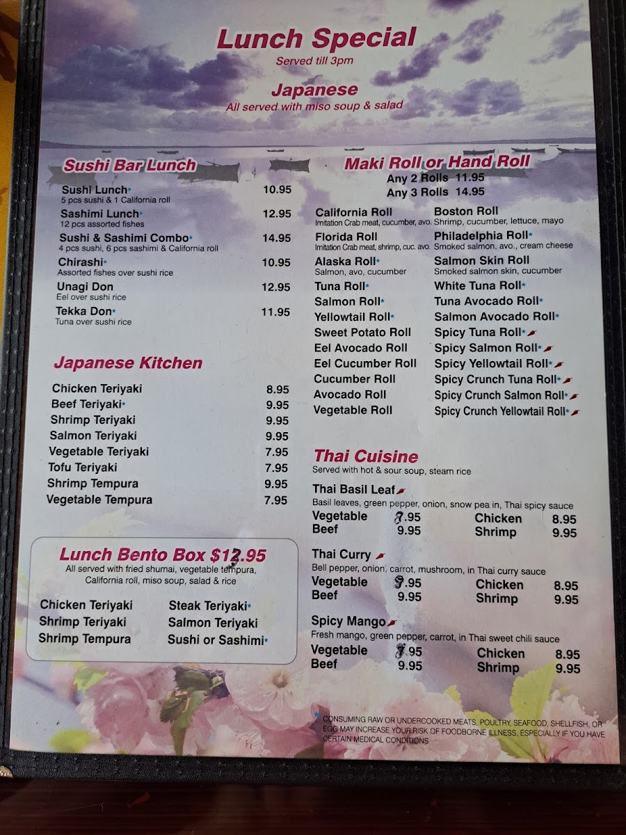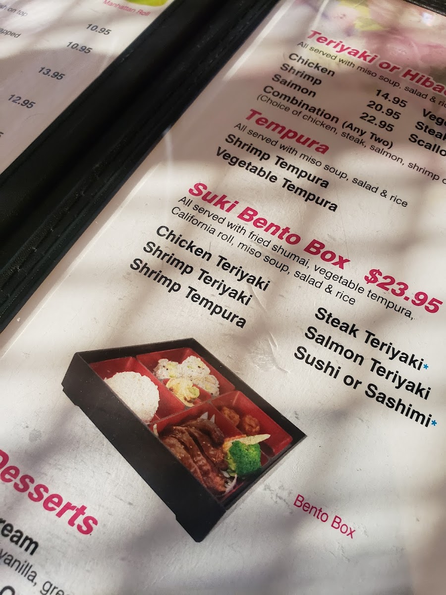 This Asian cuisine restaurant has been here for quite awhile and I’ve always wanted to try it but hasn’t worked out until today. I stopped in for lunch and from the moment I walked in I felt welcomed and valued as the service was perfection! I sat at the bar where the sushi chef was busy in front of me with the sushi was in a display case. Immediately a server greeted me and got my drink order and brought out menus, lunch specials and dinner menu. I ordered from the dinner menu. The order was served quickly and right on time after finishing my soup which was oversized to me. Then my entree was served just as I finished my soup, which was delicious (hot and sour). I got the broccoli and chicken and again a very large portion. I let him know right away that I would be needing a to go box. It too was delicious. To summarize the food was great only exceeded by the service I received. I will definitely be back soon. Can’t believe I missed coming here for over two years. Thanks Suki for an awesome experience!
